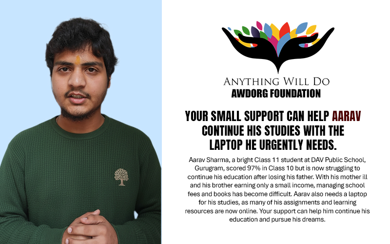 Aarav Sharma can continue his studies thanks to a laptop from AWDorg Foundation & Cashify.
